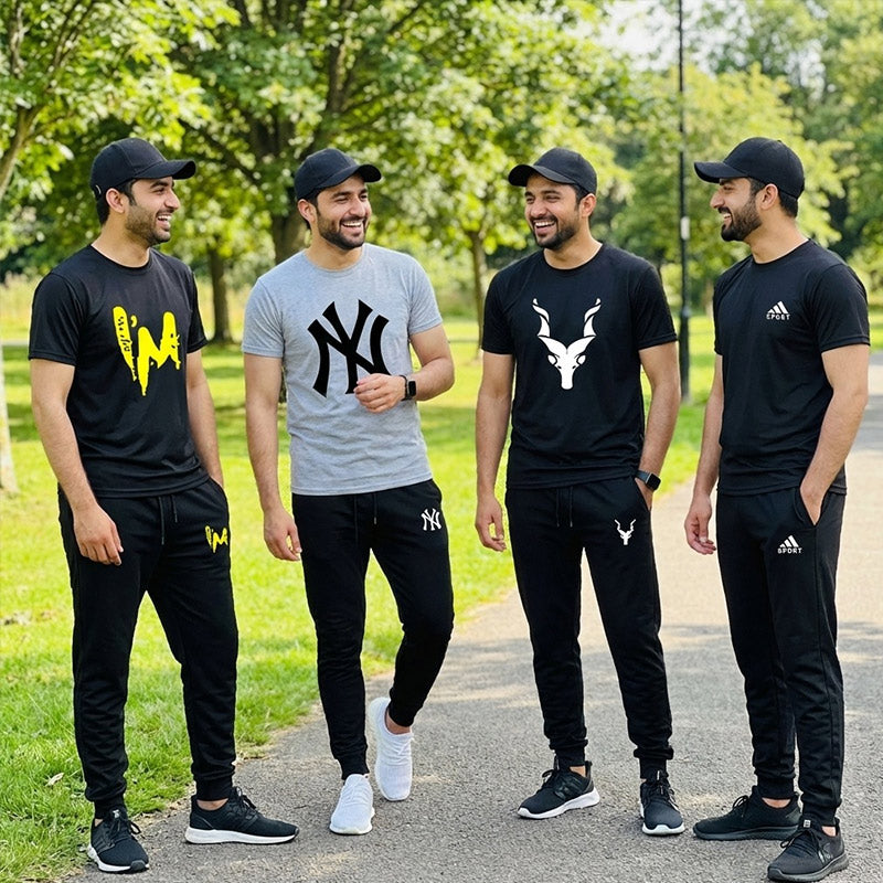 White Summer Dri-Fit Printed T-shirt+Short For Mens (Code: ST-6972)